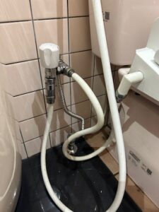 本日は、飲食店の厨房で起きた給水管の水漏れトラブルについて、給水管の一部交換作業による修理の事例をご紹介します。藤枝市にある飲食店の担当者様から修理のご依頼を頂きました。厨房のどこかのパイプから水漏れがあり、修理をご希望でした。漏水している場所はわからないとのことでしたので、まずは漏水箇所の特定から始める必要がありました。次の日お店の開店前にお伺いして詳しく見させて頂きました。厨房の床面は水浸しでしたが、床には排水溝があるので漏れた水は全て排水溝に流れている状態でした。作業台付近から水漏れしているようでしたので、作業台を移動してみると、作業台裏手に配管されていた給湯管から水漏れしていることがわかりました。天井から下がってきているパイプは銅管でしたが、途中でネジ接続の部分がありましたので、銅管を切断することなく、ネジ接続部分から外してやり替えることができました。長さもそこまでないので、銅管ではなくフレキ管にて接続して配管し直しました。作業をしている時に、従業員の方が続々と出勤して厨房内が慌ただしくなってきたので、もう少し早い時間に訪問しておくべきだったと思いましたが、開店準備のお邪魔にならずに修理は終えることができたので、よかったです。