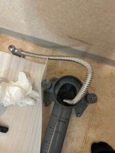本日は、飲食店の厨房で起きた排水管の詰まりトラブルについて、高圧洗浄機を使用した詰まり除去作業の事例をご紹介します。藤枝市の飲食店の厨房内にて排水溝から汚水が溢れてくると、修理のご依頼を頂き、時間は問わないとのことでしたので、現場に急行しました。シンクからまっすぐ3m位の位置に排水マスが設置されていて、排水溝の排水管は直線ルートのどこかで接続されているようでした。シンクまでの直線ルートの詰まりを除去すれば排水溝の汚水溜まりも改善されると考え、排水マスからシンクにかけて高圧洗浄作業を行いました。排水管内部には多くの油カスが詰まっていたようで、それらが除去されるにつれて排水溝内の水位も下がってきました。直線ルートの詰まりが完全に除去できたので排水溝内に水を流して排水テストを行うと、排水溝内の水位が上がってしまいました。どうやら排水溝から直線ルートまでに至る枝管の部分も詰まりが起きているようでした。排水マスからでは枝管部分にアプローチできませんでしたので、上流側の排水溝から高圧洗浄機のノズルを進ませて作業を行いました。油カスの塊層にノズルがぶつかって進まなくなり、汚水が逆流してきたので、一度ローポンプを使用して排水管内部に圧力をかけました。逆流してきた水が流れていきましたので、再度上流側から高圧洗浄作業を行うと、進まなかった部分から先までノズルが通るようになりました。その位置を重点的に洗浄し、下流側にも汚れた水が出てこなくなったので、水道ホースを使って上流側の排水溝から水を流して、下流側の排水溝や排水マスにきちんと流れてくることを確認して、今回の修理は完了となりました。お店は営業中でしたが、こちらの作業がしやすいようにと作業スペースを確保して頂けましたので、無駄なく動くことができました。