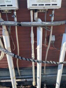 本日は、賃貸物件の台所に設置された混合水栓の交換希望のご依頼について、台付混合水栓の交換作業の事例をご紹介します。賃貸物件を管理されている管理会社の担当者様からご依頼を頂きました。来月に新しい入居者が入る予定の物件にて、水栓の本体交換をご希望でした。担当者様は一度現場を確認しているそうで、シンクには点検口もあり普通に水栓交換作業ができるとのお話でしたので、通常の交換作業の金額にてお見積りをしました。いざ現場に到着し、シンク下の点検口を外して内部を確認すると、かなり狭い作業スペースでした…お湯側の接続部分が点検口からだいぶ上の方でしたし、片方の腕がギリギリ入るか入らないかといった具合だったので、何とか頑張って水栓本体が外せたとしても、新しい水栓を設置したり、給水給湯管と接続する作業は大変なことになると感じていました。点検口がない場合はシンクを一度取り外しての交換作業の内容になりますが、点検口があったとしても作業が満足にできないのであればシンクを取り外しての交換作業が必要になります。今回は既に通常の内容にて見積りをしてしまっており、変更は聞いてもらえないようでしたので、片腕でなんとか交換作業を開始しました。開始したのですが、給水給湯管との接続部分はなんとか外すことができましたが、水栓本体を固定しているナット部分が錆びついており、どう頑張っても片腕では外すことができませんでした…。今回シンクの脱着作業については料金を頂くことはできませんが、このままではご依頼を完遂できませんので、シンクを取り外すことにしました。空室でシンク内に荷物は入っていませんでしたし、シンクにはコーキングやビス固定などはされていませんでしたので、一人でも簡単に取り外すことができたのが幸いでした。シンクを外したことにより、作業性が一気に向上し、水栓本体の交換や給水給湯管との接続もすぐに終わり、通水後の漏れがないかどうかの点検もしやすかったです。初めから無理はせずにシンクを外しておけばよかったです。漏れもなく無事交換作業ができたことを確認後、シンクを元に戻す作業を行いました。次回からは現場を確認する前の見積り段階では、シンクを脱着する場合と外さない場合との2パターンにて見積り内容をお渡しして、現場の状況に応じて作業内容を決定して、内容と料金にご了承を頂いてからの作業スタートにした方がいいと、痛感しました。